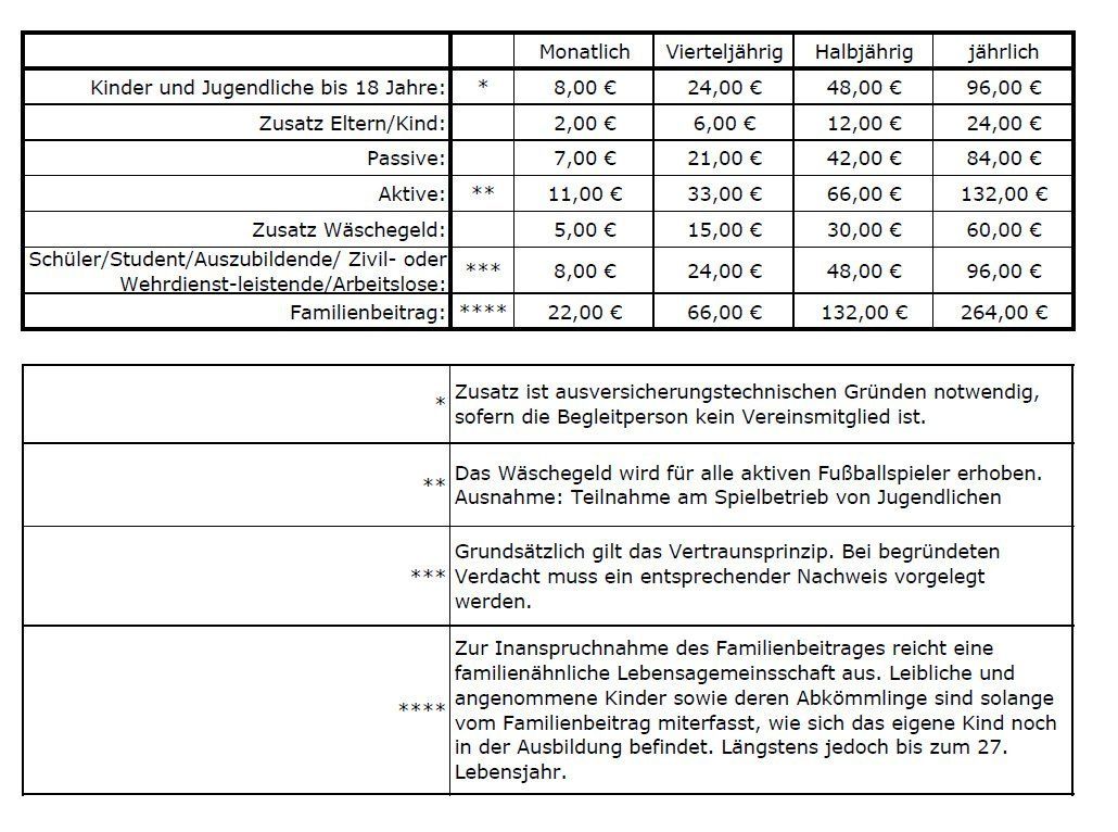 Die Beiträge sind 1/4-, 1/2- oder jährlich zu zahlen. Bei Stellung des Aufnahmeantrages ist ein Einverständniserklärung zur Einziehung im Lastschriftverfahren oder die schriftliche Bestätigung eines Geldinstitutes über einen Dauerauftrag bezüglich der Mitgliederbeiträge vorzulegen. Der Vorstand kann in besonderen Ausnahmefällen von der Einhaltung vorstehender Regelung absehen.
